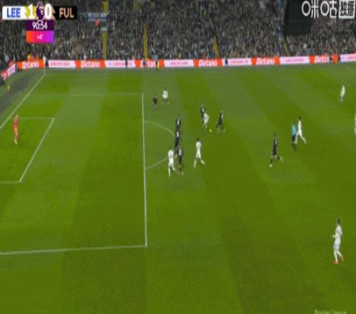 第90+1分钟,恩梅加倒地情况下扫射破门,利兹联1-0富勒姆